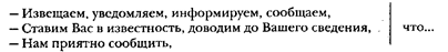 Письмо-сообщение содержит извещение, уведомление, информацию о предмете, представляющем взаимный интересуй использует стандартные выражения. К последним относятся:
