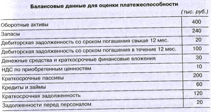 Оценим платежеспособность с помощью конкретных балансовых данных (табл. 8.1).
