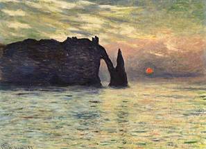 Один из основоположников импрессионизма, в своих картинах художник Моне со второй половины 1860-х годов стремился передавать средствами пленэрной живописи изменчивость световоздушной среды, красочное богатство мира, сохраняя при этом свежесть первого зрительного впечатления от природы. От наименования пейзажа Моне “Впечатление. Восходящее солнце” (“Impression. Soleil levant”; 1872, Музей Мармоттан, Париж) произошло название импрессионизма. В своих пейзажных композициях (“Бульвар капуцинок в Париже”, 1873, “Скалы в Этрета”, 1886, - обе в ГМИИ, Москва; “Поле маков”, 1880-е годы, Государственный Эрмитаж, Санкт-Петербург) Моне воссоздавал вибрацию света и воздуха с помощью мелких раздельных мазков чистого цвета и дополнительных тонов основного спектра, рассчитывая на их оптическое совмещение в процессе зрительного восприятия. Стремясь запечатлеть многообразные переходные состояния природы в разное время дня и при разной погоде, Моне создал в 1890-е годы серии картин-вариаций на один сюжетный мотив (серия полотен “Руанские соборы”, Государственный музей изобразительных искусств имени А. С. Пушкина, Москва, и другие собрания).