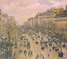 Впоследствии Писсарро часто обращался к городскому пейзажу (“Бульвар Монмартр”, 1897, Эрмитаж, Санкт-Петербург; “Оперный проезд в Париже”, 1898, ГМИИ, Москва). Во второй половине 1880-х годов Писсарро использовал иногда живописную технику неоимпрессионизма.