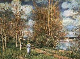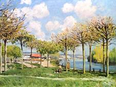 мастеров импрессионизма, Сислей писал непритязательные по мотивам пейзажи окрестностей Парижа, отмеченные тонким лиризмом и выдержанные в свежей и сдержанной световой гамме. Пейзажи Сислея, передающие подлинную атмосферу Иль-де-Франса, хранят в себе особую прозрачность и мягкость природных явлений всех времен года (“Маленькая площадь в Аржантёе”, 1872, “Наводнение в Марли”, 1876, - оба в Музее д'Орсе, Париж; “Мороз в Лувесьенне”, 1873, “Опушка леса в Фонтенбло”, 1885, - оба в ГМИИ, Москва).