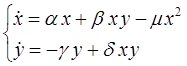 Конкурирующие предприятия (экономическая интерпретация). В модели хищник-жертва – внутривидовая конкуренция среди жертв. Система: