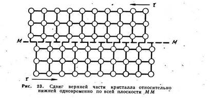 Следовательно, представление об одновременном смещении всех атомов одного слоя по отношению к атомам соседнего слоя кристалла противоречит очень низким опытным значениям критического скалывающего напряжения. Аналогия со сдвигом карт в колоде удовлетворительно объясняет лишь результат пластической деформации, а атомный механизм «сдвига» более сложен.