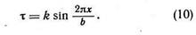В первом приближении примем, что сила сдвига плоскости I соответствующее касательное напряжение изменяются в зависимости от смещения по синусоиде: