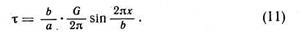 γ = x/a. Следовательно, в области малых смещений τ = k (2π x)/ b=G x/a. Отсюда k =(b/a)(G/2π). Подставляя это значение константы в выражение (10), получаем