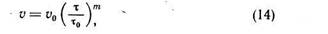 где τ0 — касательное напряжение, при котором скорость скольжения дислокации v0 = 1 см/с; т — константа материала.