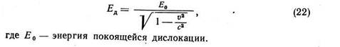 Выше рассматривалась энергия неподвижной дислокации. Поля напряжений движущейся и неподвижной дислокации различны, что объясняется возникновением инерциальных сил от движения элементов тела, вызванного движением дислокации.