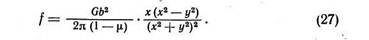 В поле напряжений вокруг краевой дислокации в точке с координатами х и у касательное напряжение в плоскости, параллельной плоскости скольжения: