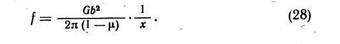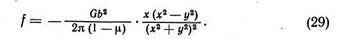 действия первой дислокации в точке O на вторую дислокацию, имеющую координаты х, у в параллельной плоскости скольжения. Учитывая, что сила, действующая на единицу длины второй дислокации, f = bτ, а также выражение (26) для τ, можно записать для силы взаимодействия параллельных краевых дислокаций одного знака: