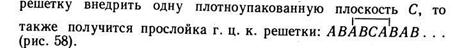 можно получить, если один из слоев В со всеми вышележащими слоями сдвинуть так, чтобы атомы этого слоя попали в соседние лунки (обозначения см. выше).