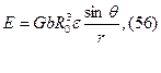 где r и θ – цилиндрические координаты примесного атома относительно прямой линии дислокации (θ = 0 в направлении вектора Бюргерса b);
