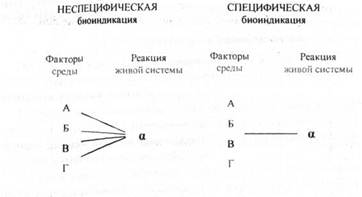 Биоиндикация может быть специфической и неспецифической. В первом случае изменения живой системы можно связать только с одним фактором среды (рис. 4.1).