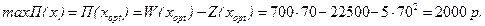 Т.о., при объемах продаж фирма будет получать доходы, а при объемах продаж деятельность фирмы является убыточной. Найдем оптимальный объем продаж , беспечивающий максимальный доход из условия , имеем , , х = 70.