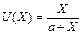 | Модель 2.Совокупная полезность U (X) стремится к некоторому пределу А при Х ![]() , U (0) = 0. Этим условиям удовлетворяют: