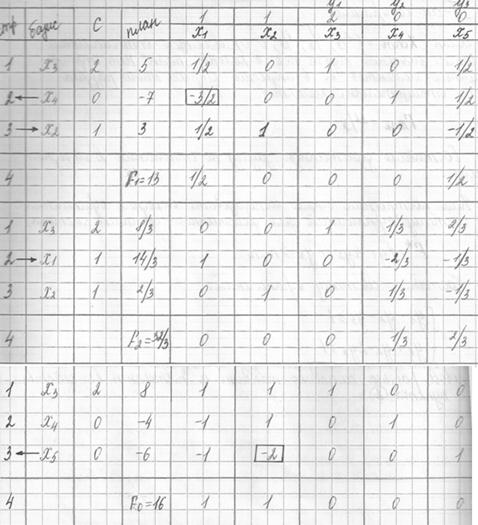 План Хопт=(14/3; 2/3; 8/3; 0; 0) является оптимальным планом исходной задачи, т.к в колонке «План» нет отрицательных элементов и в индексной строке этого раздела нет отрицательных элементов.Fmax= 32/3.