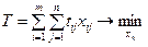 – количество j- х транспортных средств доставки, выделяемых под грузы i- го вида. Тогда общие затраты времени на погрузку всех грузов