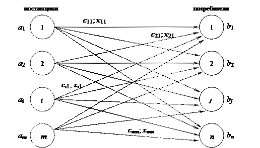 объёмов продукта, перевозимого от i- го поставщика j- му потребителю. Транспортная задача графически представлена на рис. 4.3.