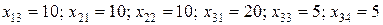 Производственные мощности каждого завода равны соответственно 10, 20 и 30 тонн кирпича в смену, т.е. а 1 = 10, а 2 = 20, а 3 = 30. Потребности строек составляют 30 т., 10 т., 15 т., 5 т. кирпича в смену, т.е. b 1 = 30, b 2 = 10, b 3 =15, b 4 = 5.