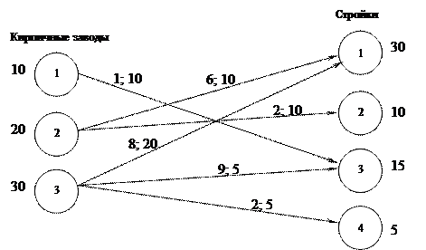 2. Приведите граф решенной транспортной задачи о кирпичных заводах и стройках.