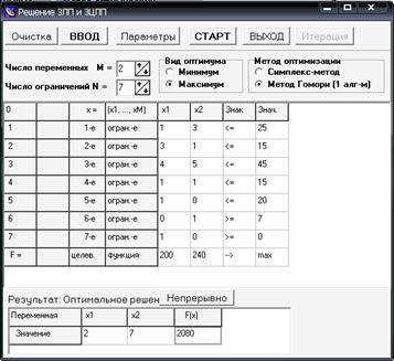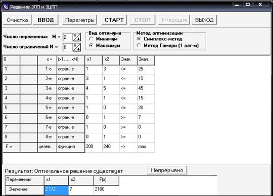 x 1 = 2, x 2 = 7, F (x 1, х 2) = 2080.