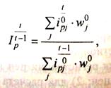 Для расчета сводных индексов используется модифицированная формула Ласпейреса я рекурсивной системой расчета стоимостных весов: