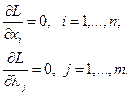 Используя необходимое условие экстремума функции L, получаем систему уравнений для определения неизвестных h,