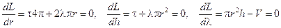 Как было сказано выше, нелинейные модели в некоторых частных случаях допускают получение аналитического решения, то есть решения в виде формул. Построим аналитическое решение задачи (5.4), (5.2), (5.3), отбросив условие (5.3). Будем определять оптимальные значения r и h с помощью метода Лагранжа, применяемого в случае, когда все ограничения вида (3.2) имеют вид равенств: