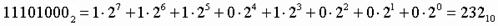 1. Для перевода двоичного числа в десятичное необходимо его записать в виде многочлена, состоящего из произведений цифр числа и соответствующей степени числа 2, и вычислить по правилам десятичной арифметики:
