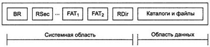 В файловой системе FAT дисковое пространство любого логического диска делится на две области (рис.) системную область и область данных.