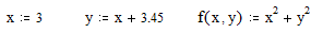 Mathcad читает рабочий документ сверху вниз и слева направо. Определив переменную, например, x, ее можно использовать в вычислениях везде ниже и правее равенства, в котором она определена.