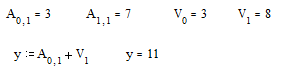 Обращение к элементам матриц и векторов производится по их индексам. При этом следует иметь ввиду, что нумерация строк и столбцов матриц а также элементов вектора начинается с нуля. Для перехода к нижнему индексу после набора имени вектора или матрицы необходимо нажать клавишу “ [ “. Например, для приведенных выше матрицы A и вектора V можно получить: