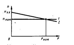 Регуляторная характеристика представляет собой зависимость частоты вращения n приводного двигателя от мощности Р генератора при фиксированном положении регулирующего органа – рейки топливного насоса (рис. 3.1).