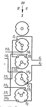 0, I, II, III – положения рукоятки переключателя; 1Л