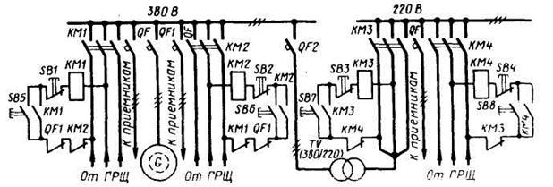 ты КМЗ и КМ4 исключают одновременное включение напряжения 220 В от ГРЩ и от шин 380 В через TV.