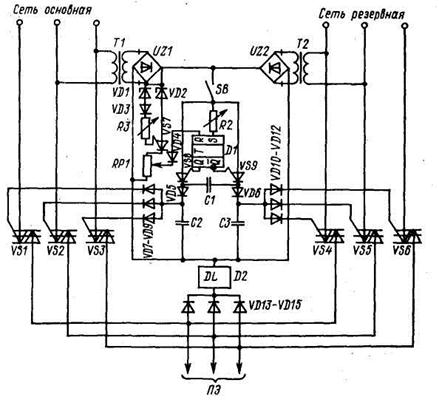 Рис. 5.7. Схема бесконтактного автоматического переключения сетей