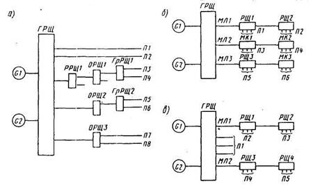 Рис. 6.1. Принципиальные схемы силовых электрических сетей:
