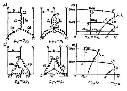 ческий момент двигателя не изменяется и потому отсутствует опасность опрокидывания двигателя. В то же время такая опасность существует при переключением обмотки стато-