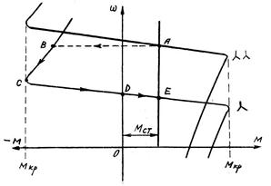 Под совместным действием этих моментов двигатель быстро набирает скорость по траектории «АВС», причем в точке «С» скорость ротора увеличивается до скорости вра-