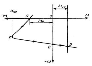 Под совместным действием этих моментов двигатель быстро уменьшает скорость ротора по траектории «ВСD», причем в точке «D» скорость ротора уменьшается до скоро