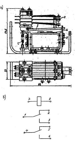 на нижнем рисунке: 1, 2, 3, 4, 5, 6 – номера выводов контактов; 7, 8 – номера выво-