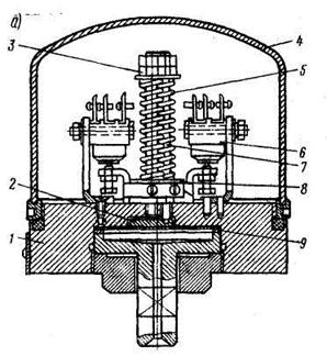 вочные пружины; 6 – микропереключатель; 7 – стержень; 8 – подушка; 9 – мембрана