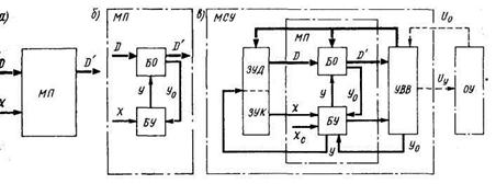 но с ним образуют микропроцессорную систему управления МСУ некоторым объектом ОУ (рис. 9.87, в).