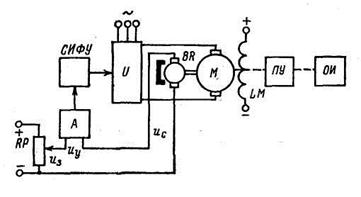 го управления тиристорами преобразователя U; BR – тахогенератор; RP – задающий потен