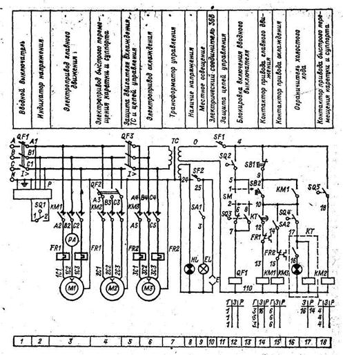 Возможен следующий порядок чтения принципиальных схем электропривода: