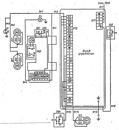 Схема соединений (монтажная) показывает соединения внутри составных частей изделия (шкафов управления, магнитных станций и т.п.) и определяет провода, жгуты, трубопроводы, которыми осуществляются эти соединения, а также места их присо