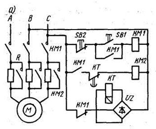 Схема автоматического пуска асинхронного электродвигателя в функции времени
