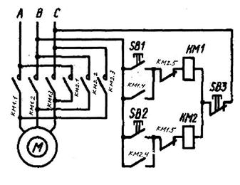Рис. 130. Принципиальная электрическая схема реверсивного магнитного пускате-