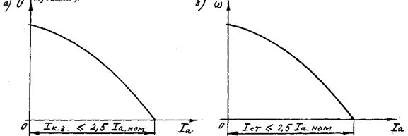 Как следует из графиков внешней и механической характеристик, описанное выше включение обмоток возбуждения генератора позволяет ограничить ток стоянки двигателя I