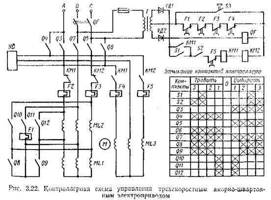 Рис. 12.6. Контроллерная схема управления 3-скоростным якорно-швартовным электроприводом