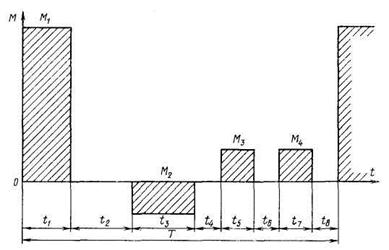 Работу лебедки в этом случае можно проиллюстрировать диаграммой изменения момента на валу ЭД за цикл погрузки (рис. 13.4).